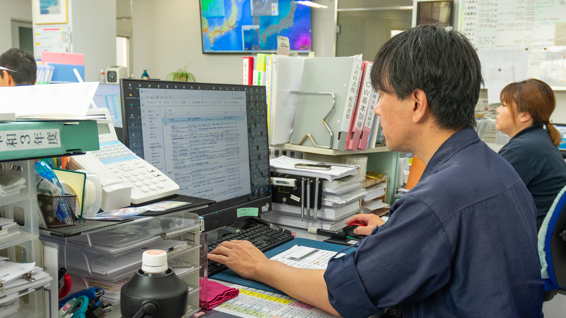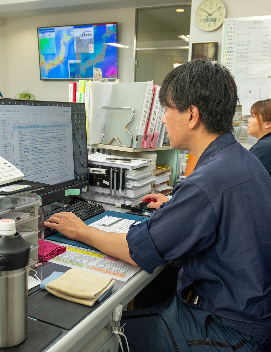 工務、安全管理、船舶部などの専門職と、それらを支える営業部門などで構成されます。海上職と綿密に連携し、安心して業務に集中できる環境をつくることで、安定した海上輸送を実現させる仕事です。